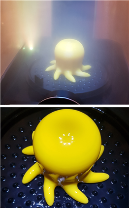 After placing the model on the polishing platform and lowering the model into the chamber, all I had to do was twist the control dial to set my polishing time. As you turn the dial, blue lights illuminate to indicate the set polishing time. Each blue light equals 5 minutes polishing time. For my first model (yellow octopus) I wasn't too sure how long to polish my model for but Polymakers manual suggested starting with 20-40mins, I initially decided that 20 minutes would be a good starting point to try but decided mid polishing to add another 5 minutes. and as you can see the result was fantastic!
